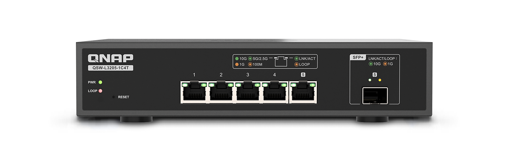 A QNAP® Systems, Inc., a számítási-, hálózatépítési- és tárolási megoldások vezető innovátora ma bemutatta az új, 5 portos, 10 GbE-s multigigabites/Fiber Lite-menedzselt switchet, a QSW-L3205-1C4T-t. Négy 10 GbE-s multigiabites RJ45-porttal és egy 10 GbE-s SFP+/RJ45 kombinált porttal a QSW-L3205-1C4T minimális költségek mellett maximalizálja a hálózati teljesítményt, a leggazdaságosabb választássá téve azoknak a kis stúdióknak és alkotóknak, akik nem menedzselhető switchről frissítenek Lite-menedzselhető switchre.
