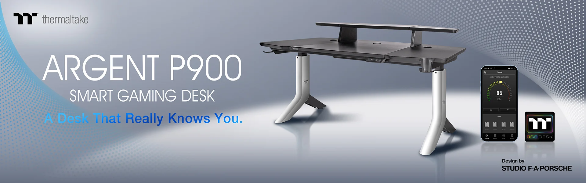 A THERMALTAKE BEJELENTETTE AZ ARGENT P900 OKOS GAMER ASZTAL ELÉRHETŐSÉGÉT, AMELYET A STUDIO F. A. PORSCHE-VAL KÖZÖSEN TERVEZTEK