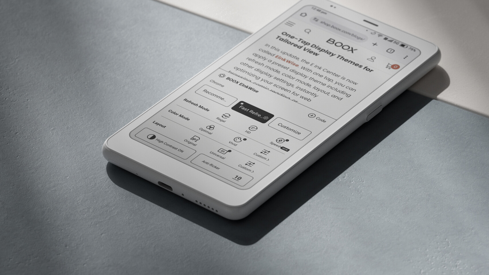 Belül egy erőteljes nyolcmagos processzor, a BOOX Super Refresh technológia és továbbfejlesztett 8 GB RAM + 128 GB tárhely biztosítja, hogy minden feladat gördülékeny és gyors legyen. Az Android 15-re történő áttérés jobb alkalmazáskompatibilitást és a széleskörű testreszabhatóságot kínál, valamint hozzáférést biztosít a Google Play ökoszisztémában található alapvető alkalmazásokhoz. Optimalizálj egyszerűen mindent az EinkWise kijelzőbeállításokkal a tevékenységhez igazított frissítési sebesség és színek érdekében, ami még gördülékenyebbé és intelligensebbé alakítják az olvasást és a böngészést!